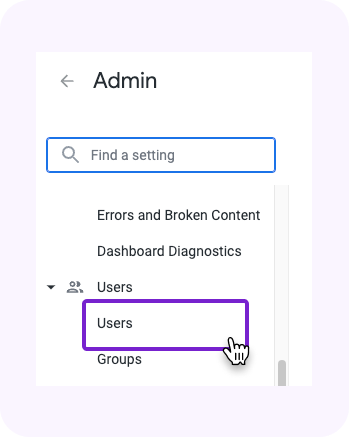1. Find the "Users" option in the "admin" sidebar