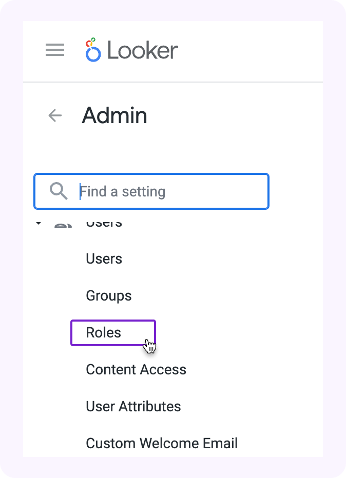 1. Browser to the "admin" section in your Looker instance and find the "roles" menu item