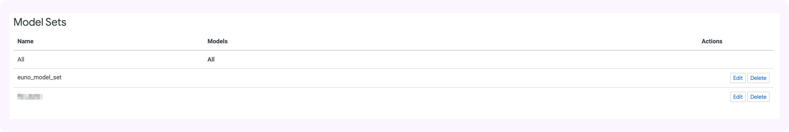 5. Once saved, you'll be redirected back to the "Roles" screen. Verify that the model set was created by scrolling down to the "Model Sets" table. You should see the new Model Set there.